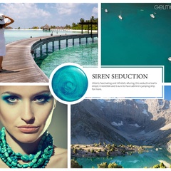A pearly peacock blue with an alluring aquamarine iridescence.